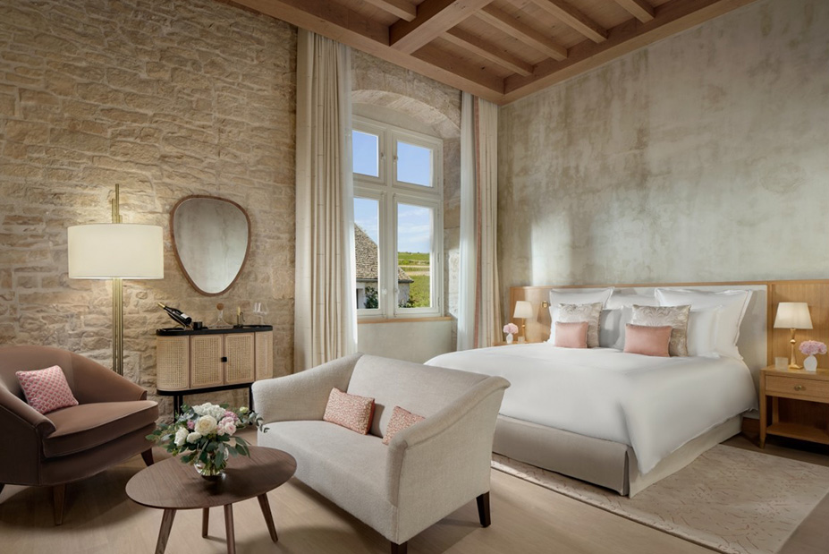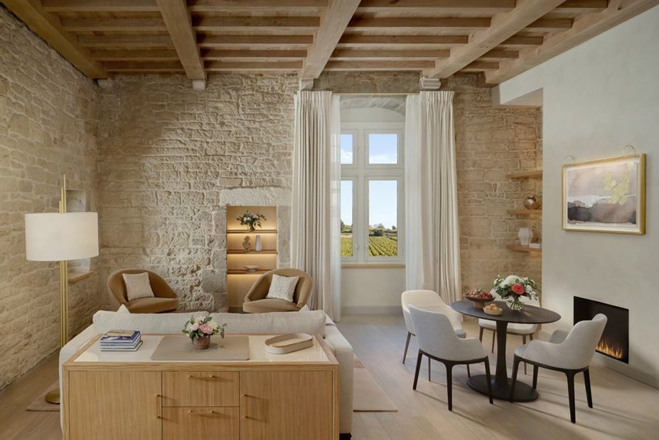 The 37-room château will feature interiors that honor its medieval roots while embracing refined, contemporary design. Expect soft tones, natural materials, and panoramic vineyard views from every corner.