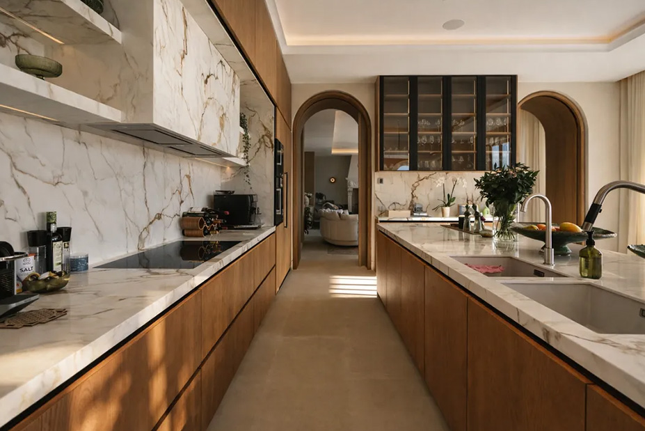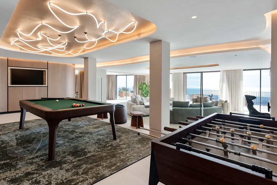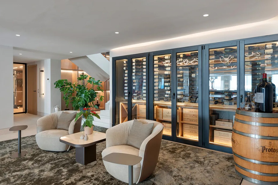 Inside, every detail supports a lifestyle of ease and indulgence. A private spa and fully equipped gym invite restorative rituals, while a cinema room and wine cellar set the scene for memorable evenings. The chef’s kitchen—designed for both intimate dinners and large-scale entertaining—anchors the home’s social spaces, making it equally suited to celebratory occasions or relaxed family meals.