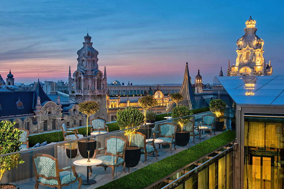 - First stop: The Duchess Rooftop at Matild Palace, a Luxury Collection Hotel, this time properly outdoors. In February, we enjoyed it from inside because of the winter weather, but I can only imagine how magical the terrace must feel on a warm spring or September evening, cocktail in hand, overlooking the city lights.