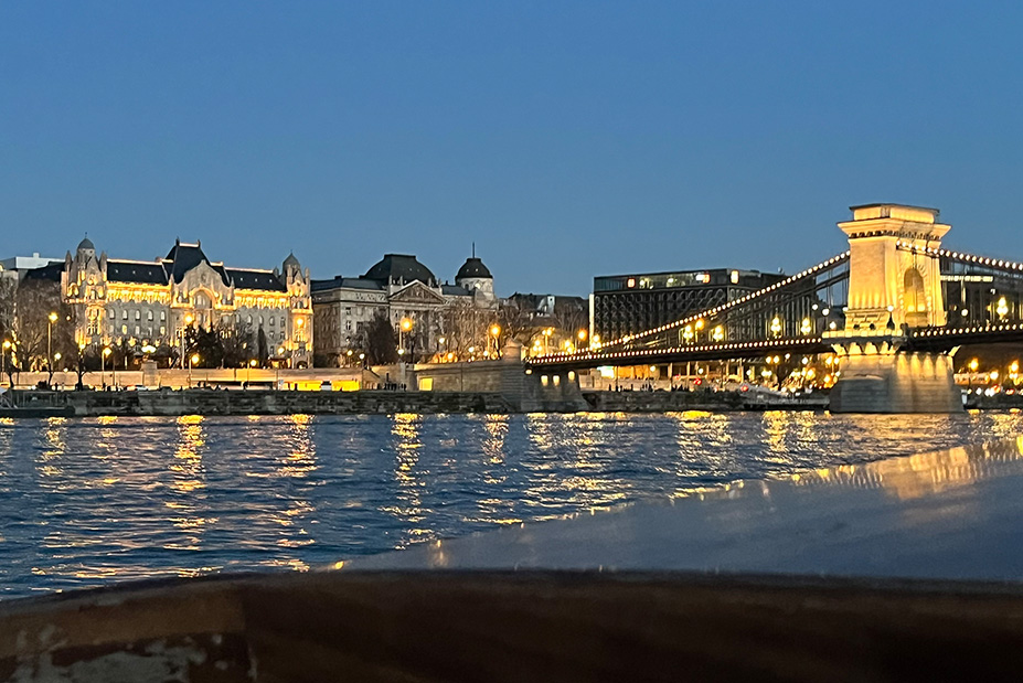 Glass of bubbly in hand, wind in our hair, cruising along the Danube as the sky turned gold….. it was breathtaking.
