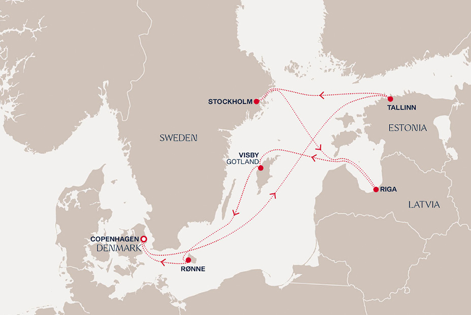 Set amid Copenhagen’s charming statues and elegant Neoclassical architecture, your journey begins. Indulge in unparalleled luxury aboard EXPLORA III as you sail to the medieval splendour of Tallinn, the sophisticated allure of Stockholm, Riga’s striking Art Nouveau scene, and Visby’s UNESCO-listed treasures. Discover the rugged coastal beauty of Rønne before concluding your voyage back in Copenhagen, the heart of Scandinavian hygge.