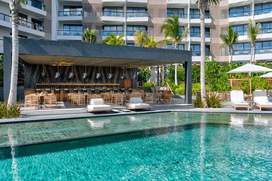 - 173 guest rooms and suites, some with private swim-up pools