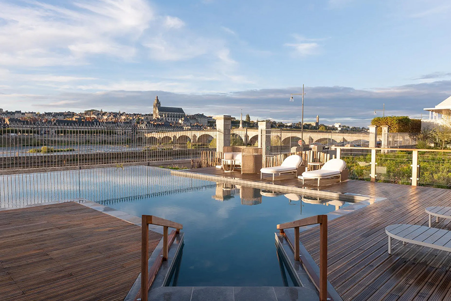 Between château hopping in Blois and beyond, restore body and mind with a Pilates session or a phyto-aromatic treatment at the Sisley spa, then unwind by the outdoor pool overlooking the Loire River, its winter light soft and serene.
